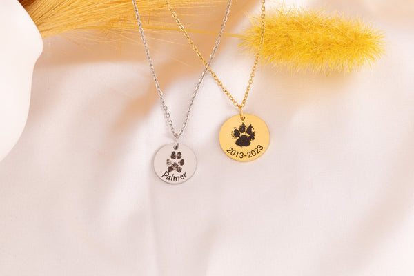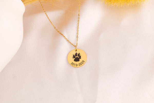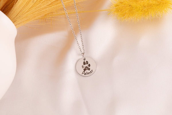 Paw print Custom pet necklace - engraved pet photo necklace - pet family portrait - dog paw portrait - pet from photo - Cat Pow