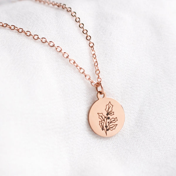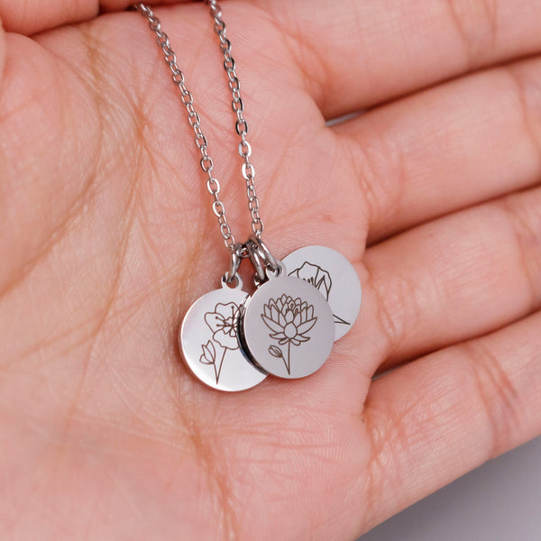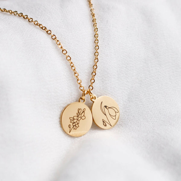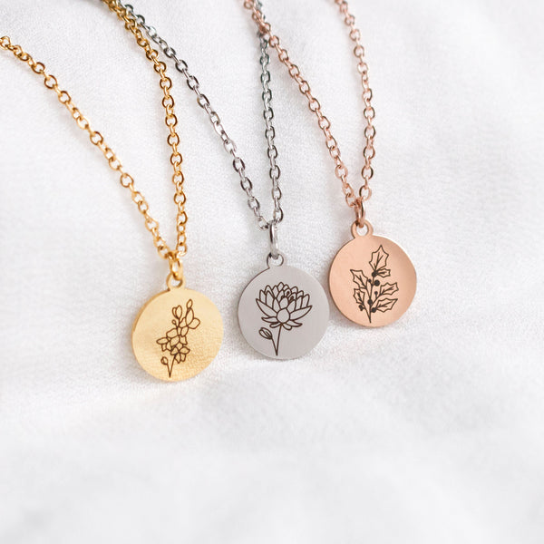 The Birth Flower Necklace is an elegant way to show your appreciation this Mother's Day or Birthday. Featuring a birth flower charm on a delicate chain, it's the perfect gift for your daughter, friend, or bridesmaid. Express your love and gratitude with this unique heirloom-quality necklace. Brighten up her special day!