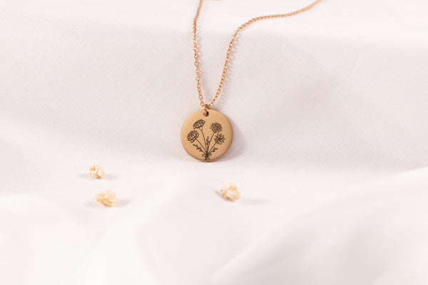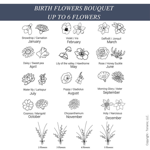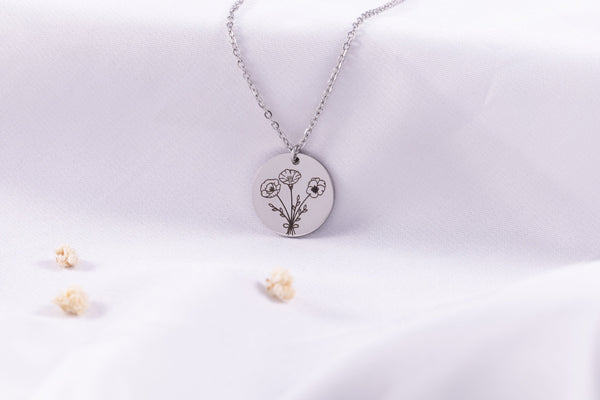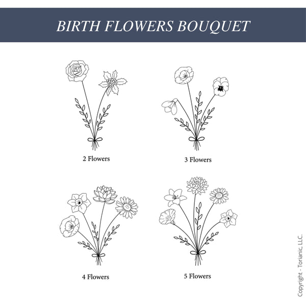 Add a touch of nature's beauty to your everyday look with our Bouquet Birth Flower Necklace. Each pendant is handcrafted to feature the unique blooms associated with your birth month and your loved ones, creating a one-of-a-kind piece that is as unique as you are. Strung on a delicate chain, this necklace is made with high-quality materials to ensure lasting durability. Whether you're seeking a meaningful gift for a loved one or a special treat for yourself, our Bouquet Birth Flower Necklace is the perfect choice. Order now and bring a touch of nature to your style!"