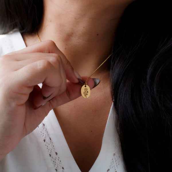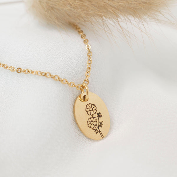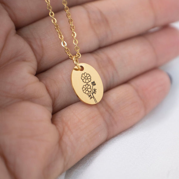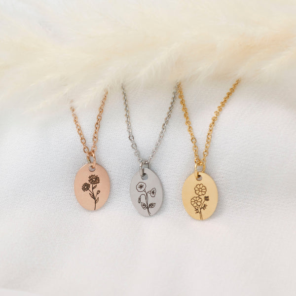 Birth Month Flower Necklace Oval, Bouquet Necklace, Mothers day Jewelry Gift, Best Friend, Birthday Present, Gift for her, Bridesmaid