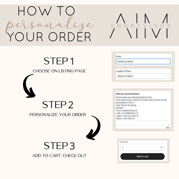 • Jewelry comes on a card inside a box, then placed in a cotton filled, Aim Engravings stamped box.
