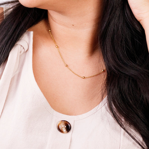 This dainty beaded choker features a satellite chain, bringing timeless elegance to any ensemble. Crafted in gold-plated metal, this chic necklace will add a sophisticated touch to your style.