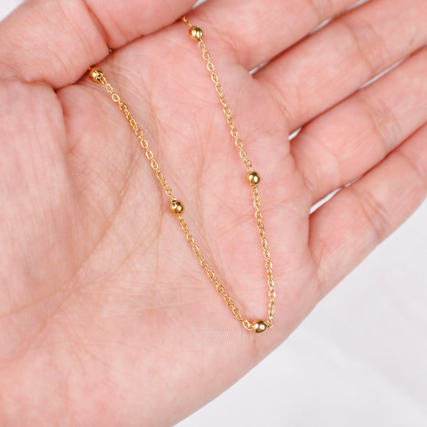 Dainty Beaded Choker, Gold Chain, Beaded Choker, Satellite Chain, Satellite Choker Necklace, Dainty Choker