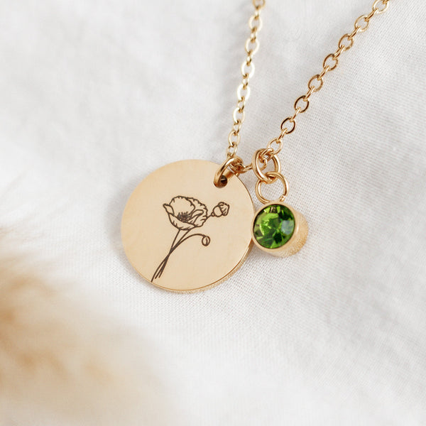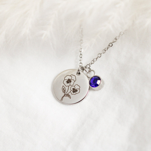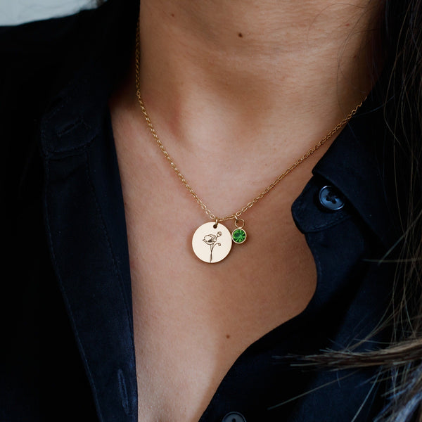 Birthstone Necklace, Birth Month Birth Flower Necklace, Gift for her, Mothers day Jewelry Gift, Best Friend, Birthday Present