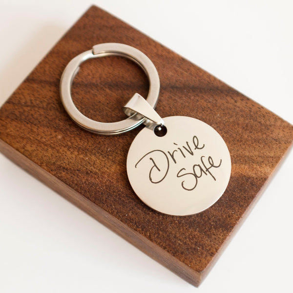 This Handwriting Keychain is a thoughtful and custom way to commemorate a special moment. Perfect for anyone, this custom keychain features a handwritten name, making it an ideal keepsake or gift. Show someone special you care with a unique, personalized Handwriting Keychain.