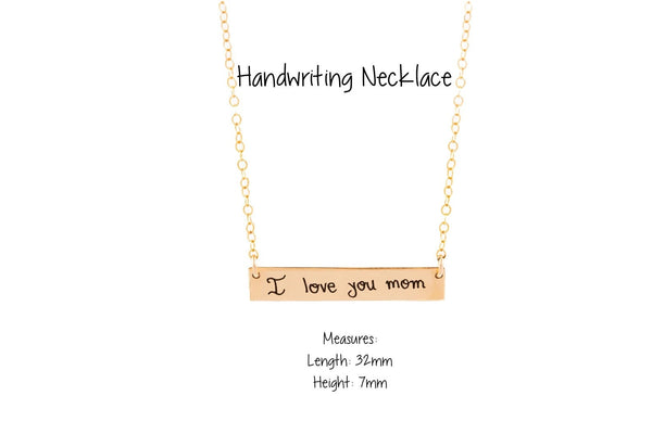 This Handwriting Necklace is the perfect way to keep a favorite message, signature, or name close to you. Made with high quality stainless steel, the bar necklace is crafted to showcase the most important memory with clarity and precision. Celebrate a special moment and wear your loved one's handwriting with pride.