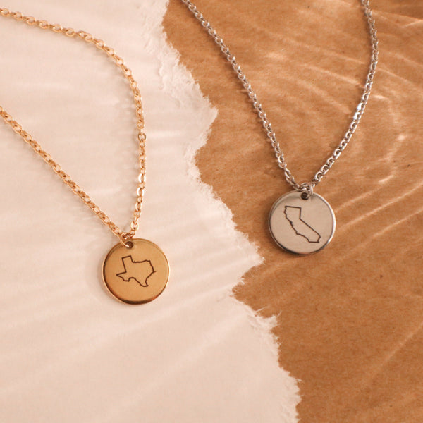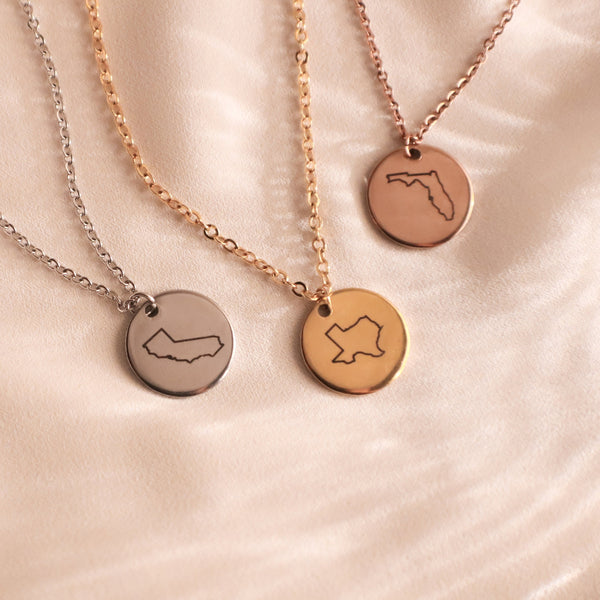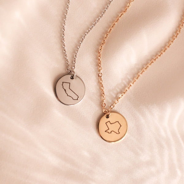 Personalized State Necklace, Best Friend Gifts, Long Distance Relationship, State Necklace Disc 15mm