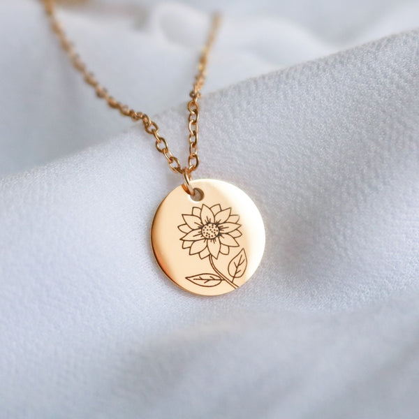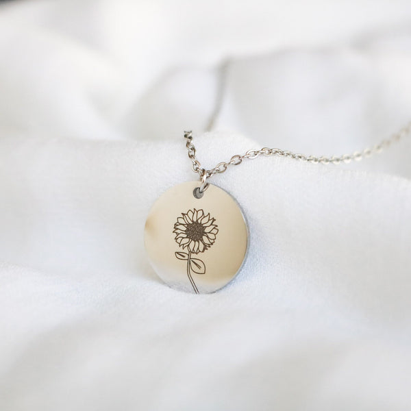 Sunflower gold for women Necklace, Floral Pendant for best friend gift, Personalized flower gift, blk sunflower