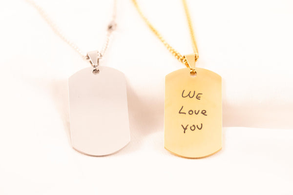 Turn your loved one’s actual handwriting into treasured jewelry for you to cherish always. This Handwriting Necklace is the perfect way to keep a favorite message, signature, or name close to you. Made with high quality stainless steel, the bar necklace is crafted to showcase the most important memory with clarity and precision. Celebrate a special moment and wear your loved one's handwriting with pride.