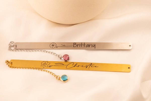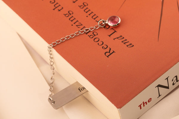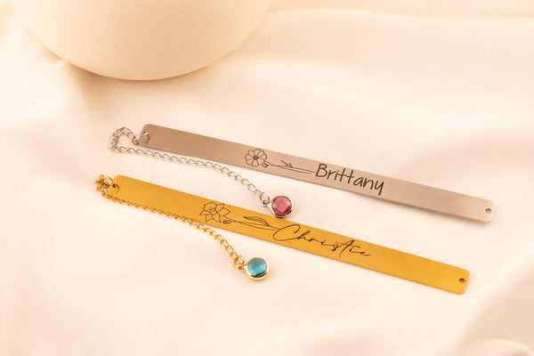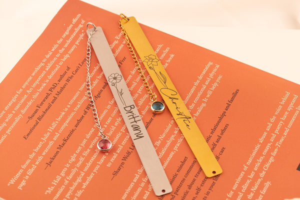 Celebrate the joy of reading with this personalized metal birth flower bookmark accented with a sparkling birthstone charm. Designed to combine elegance with meaning, this custom page marker transforms every book into a personal keepsake. Made from durable, high-quality metal, each bookmark is engraved with a detailed birth flower and finished with a delicate birthstone charm, symbolizing both beauty and individuality. Perfect as a thoughtful gift or a treasured personal accessory, it’s a piece that blends sentiment with style. Why You’ll Love It: Premium metal construction for durability and shine Engraved birth flower for a timeless design Birthstone charm adds a unique, personal touch Smooth edges to protect your pages Perfect Gift For: Birthdays, anniversaries, graduations, and holidays Teachers, students, and book club members Loved ones who treasure books and personalized gifts Each bookmark arrives gift-ready and beautifully packaged, making it easy to share with someone special. Fast shipping ensures your custom bookmark is ready when you need it most.
