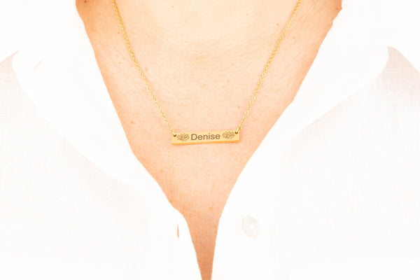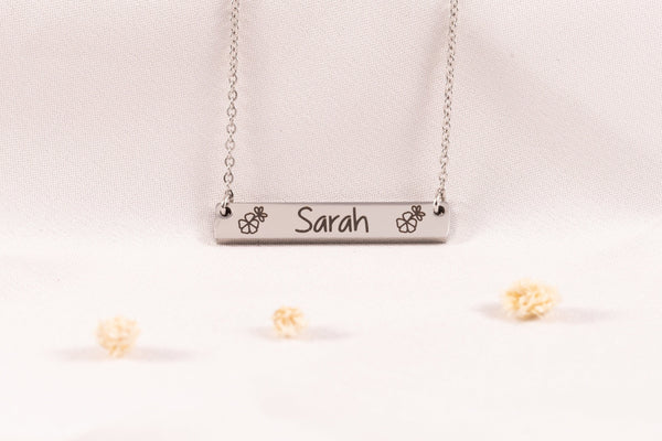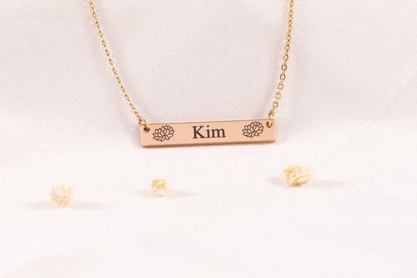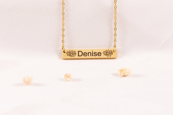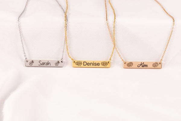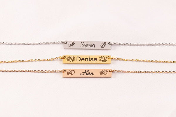Birth Flower Name Necklace - handmade Text Necklace - Wildflower Necklace Engraved - Friendship Necklace - Friend Gift - name plate necklace