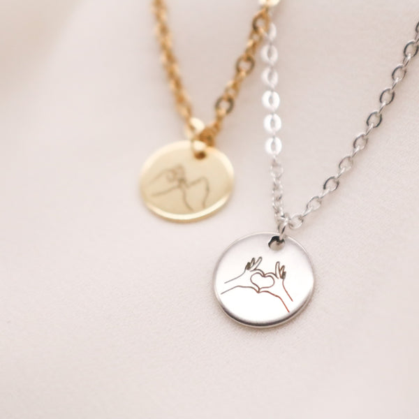 Hand Gestures Necklace, I Love You Necklace, ASL Disc Necklace, Pinky Promise Necklace Personalized, Best Friend Necklace, Girlfriend Gifts