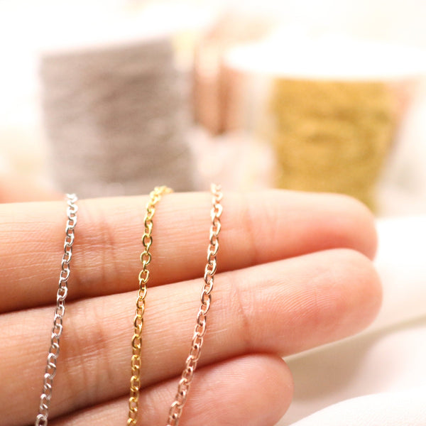 Jewelry chain in Hypoallergenic 316L grade stainless steel, delicate and strong. This is very tiny chain! Each oval link is just approximately 1.2x1.5mm in size.