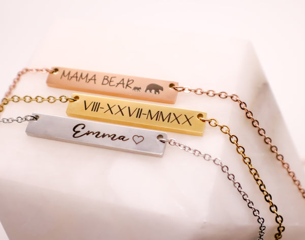 This personalized necklace is the perfect gift for someone special in your life. Crafted from durable stainless steel, the bar-shaped pendant features an engraving of any name, word, or phrase of your choice so you can create a truly unique and special piece. It's the ideal way to show someone just how much they mean to you.