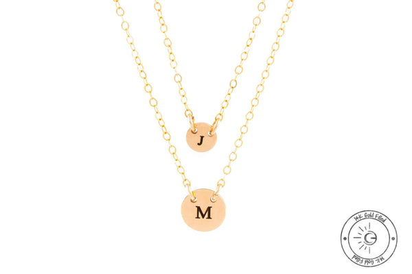 14k Initial necklaces - Dainty Layered gold necklace set of 2 - girlfriend gift - Wife Gift - layer necklace gold filled women choker Disc