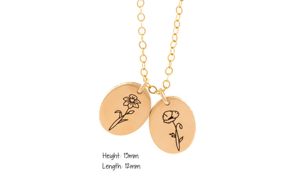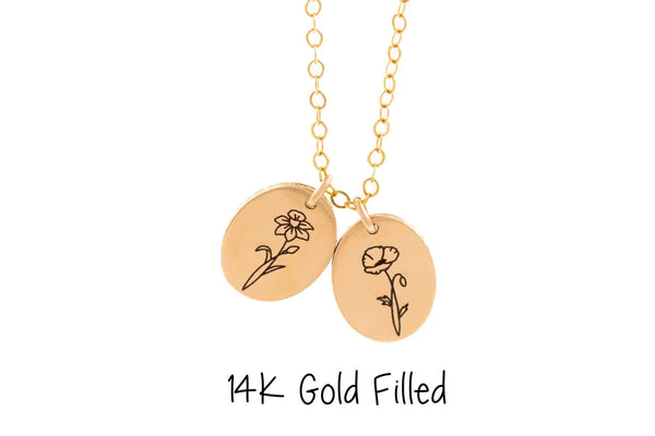 BirthFlower Oval Necklace - Mothers day Jewelry Gift - Best Friend Birthday Present - Gift for her, 14k Gold Filled - Sterling Silver