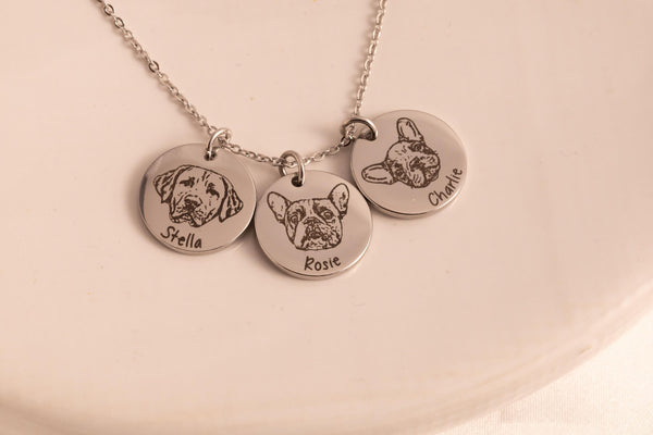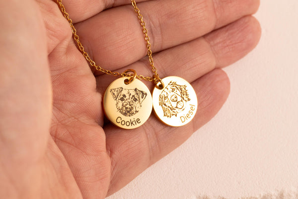 Capture the essence of your beloved furry friend with our Pet Portrait Dog Necklace. This one-of-a-kind piece of pet lover jewelry features a handcrafted pet pendant that showcases the unique features and personality of your precious dog. It's the perfect accessory and a heartfelt gift for dog owners who cherish their loyal companions.